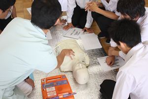 AED講習も行われました。使い方や注意点、心臓マッサージの方法をお聞きしました。