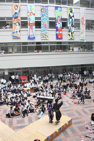 生徒会執行部の生徒が作成した映像作品から幕を開け、各クラスの模擬店やアトリウムに飾られた垂れ幕が校舎を彩り、浴衣コンテストや、ユニークな芸を披露するGAYコンなどさまざまな催し物が行われました。