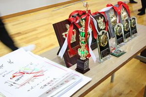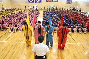 体育祭は、台風の影響から5日(月)に行われました。体育館で行われ、競技の変更、時間帯の変更などにも負けないほどの気迫と盛り上がりを見せました。