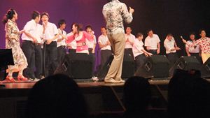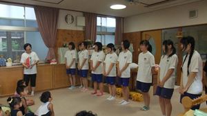 生徒も参加し、音に合わせてステップを踏んだり、歌ったりしました。