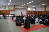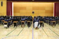 2月25日(水) 全校集会および卒業式の式歌練習が行われました。集会では、大会結果の紹介・スタンダードコンクールの表彰のあと、生徒指導担当より安心安全に生活するために気をつけることが話されました。引き続き卒業式の式歌練習がありました。