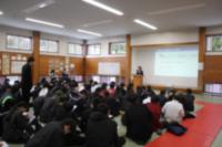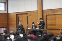 3月12日(木) 大岩同窓会長をお迎えして同窓会入会式が行われました。クラスおよび小学校区の幹事の紹介・学年代表による入会の言葉のあと、同窓会長より歓迎の言葉がありました。