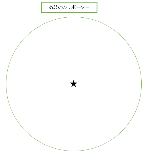 下の円は、あなたがふだん生活している世界と想像してください。中心の★印があなた自身です。あなたの周りに、あなたを支えてくれそうな人を思い出してみましょう。(藤森)