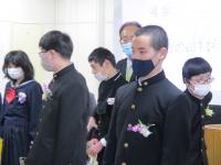2月24日(木)に卒業生を送る会を行いました。1年生の出し物は「誰でしょうクイズ」でした。積極的に手を挙げて答える生徒が多く、全員が楽しんでいる様子でした。2年生は、3年生を交えながら手品を披露しました。間近で見る手品に驚いたり、楽しんだりする様子が見られました。3年生は、写真や飾りをつけた思い出ボードを1人ずつ持ち、中学部で過ごした3年間の中で、特に思い出に残っていることを発表しました。中学部全員で行う最後の行事は、思い出の残る会になりました。