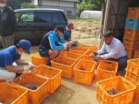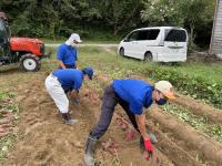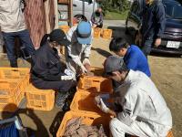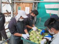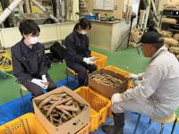 22日(火)、24日(木)には農事組合法人能登やまびこへ実習に行きました。カブの収穫では10cm程度の大きさのものを収穫し、葉を切り、洗浄機できれいにしました。サツマイモの土落とし作業では、大洋農産で学んだことを活かし、土を落としたり、虫食いやカビが生えたイモを除外したりすることができました。