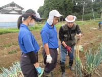 また10月17日(月)、18日(火)の2日間、農事組合法人なたうちへ農業実習に行きました。実習では中島菜の種まき、間引き、ネギの収穫から箱詰めまでの出荷作業を行いました。3年目の生徒は慣れた様子で1年目の生徒に教える様子が見られました。なたうちさんでのネギを見て生徒たちは「学校のネギより長い!」と驚いた様子でした。学校での販売学習の甲斐あって、スムーズに実習に取り組むことができました。