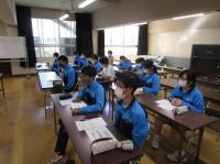 生徒らは、みんな静かにしっかり話を聞き、質疑応答の時間では「投票率の低さが気になりました。高くなるといいと思いました。」や「期日前投票の制度を初めて知ったので、投票できるようになったらぜひ活用したいです。」や「ネット投票はできないのですか?」などたくさんの質問や感想が出まして、とても有意義な時間になりました。18歳から選挙権を持つことになりますので、この時間や今後の社会科の授業などでの学習を活かして、選挙・投票や地域のことについて考えてほしいと思います。