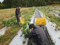 11月15日(火)、17(木)に株式会社能登風土へ農業実習に行きました。実習ではマルチはがしを行い、学校の畝の何倍もの長さの畝のマルチを生徒同士で協力してはがすことができました。またピーマンの収穫では夏の実習で学んだ指4本程度の大きさのものを収穫するということを思い出して収穫することができました。