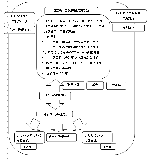・日頃から、児童生徒が発するサインを見逃さないようにしていじめの早期発見に努める。