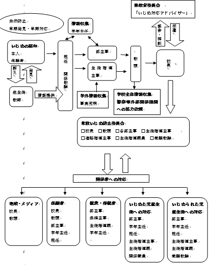 ・児童生徒が発するサインを見逃さないよう、児童生徒の実態に合わせて調査を実施し、全教職員の共通理解のもと、迅速に対応する。
