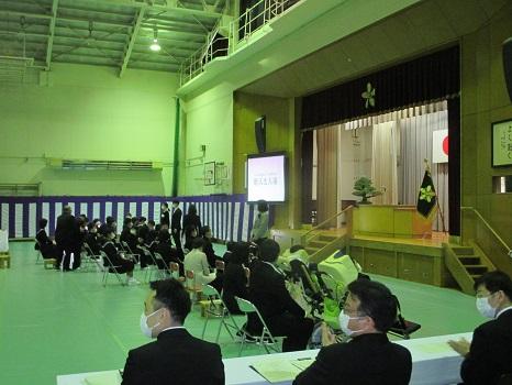 新型コロナウイルス感染拡大防止のため、規模を縮小し、時間を短縮して行われました。部主事から名前を呼ばれた新入生が返事をすると、大きな拍手が起こりました。