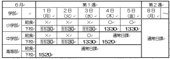 本校でも、下記の通り馴致期間を設け、登下校スクールバスも一部増便します。保護者の皆様には、毎朝の健康観察や検温などお願いすることになりますが、何卒ご理解、ご協力をお願いします。