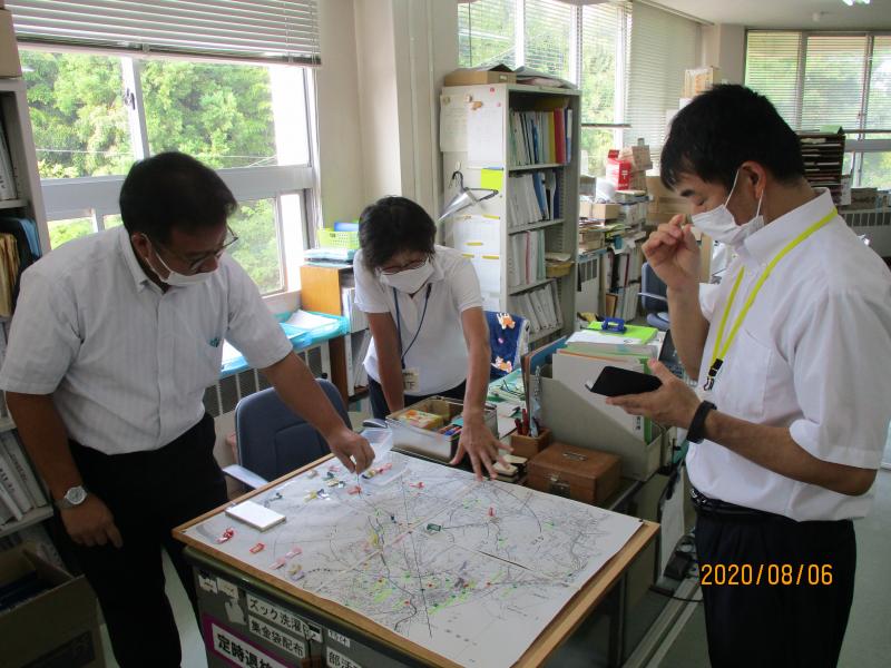 2020年8月17日 11時36分8月6日(木)に第2回の児童生徒不明時対応訓練を行いました。児童生徒が不明になった場合の校外捜索を想定して、職員が班に分かれて担当場所を地図で確認しながら訓練を行いました。翌日の7日(金)には、不審者侵入対応訓練を行いました。七尾警察署生活安全課の警察官2名が講師として来校され、講義と演習をして頂きました。不審者が校内や教室に入ってきた場合にどのような対応をするべきかを画像や講話を通じて学びました。その後、演習としてグループに分かれて刺又の使用方法も学びました。