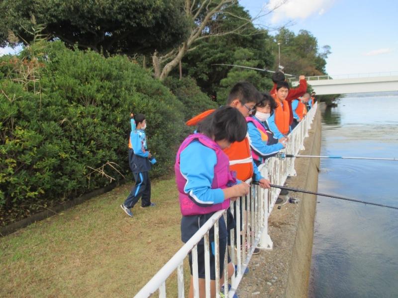 今回は、学習のまとめ「実際に海に釣りに行こう!」ということで、学校付近の川で何度も釣りの練習を重ね、今日の活動に挑みました!これまで一匹も釣れなかったので、生徒たちは「今日は釣れるかな~?」とドキドキわくわくな様子でした。