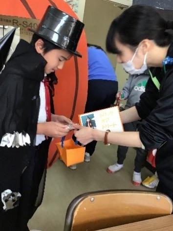やりたい仮装を決め、当日に向けてそれぞれ準備をしました。ハロウィン当日は準備した衣装を着て保健室や職員室に行き、「トリックオアトリート!」の合言葉を先生に伝え、景品をもらうことができました。