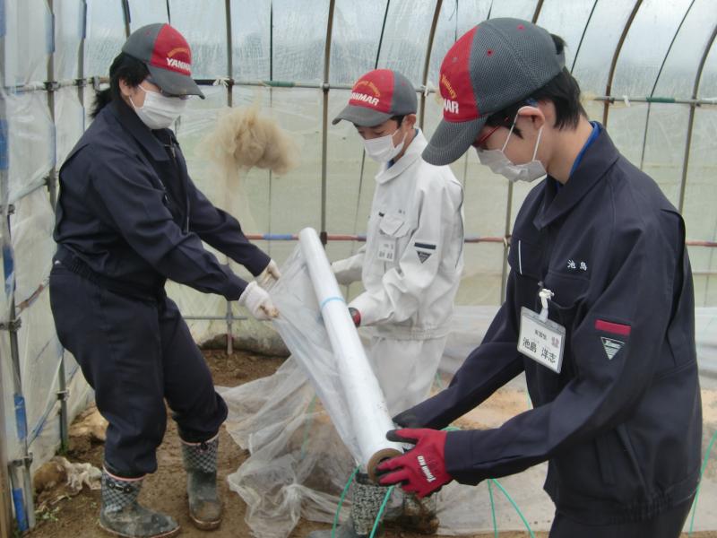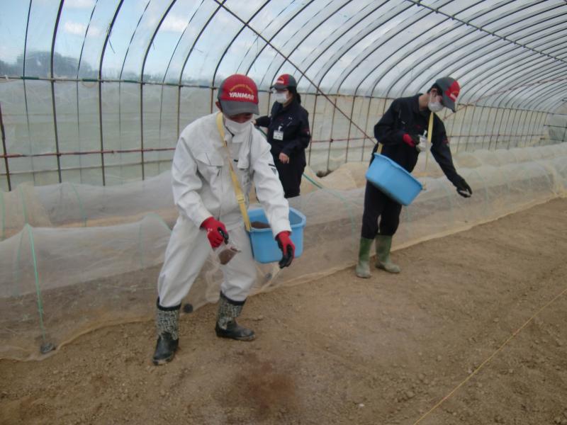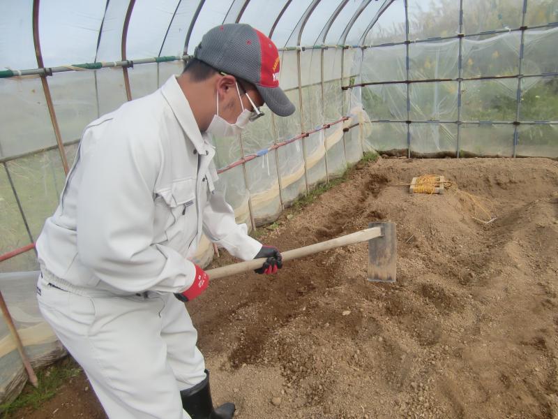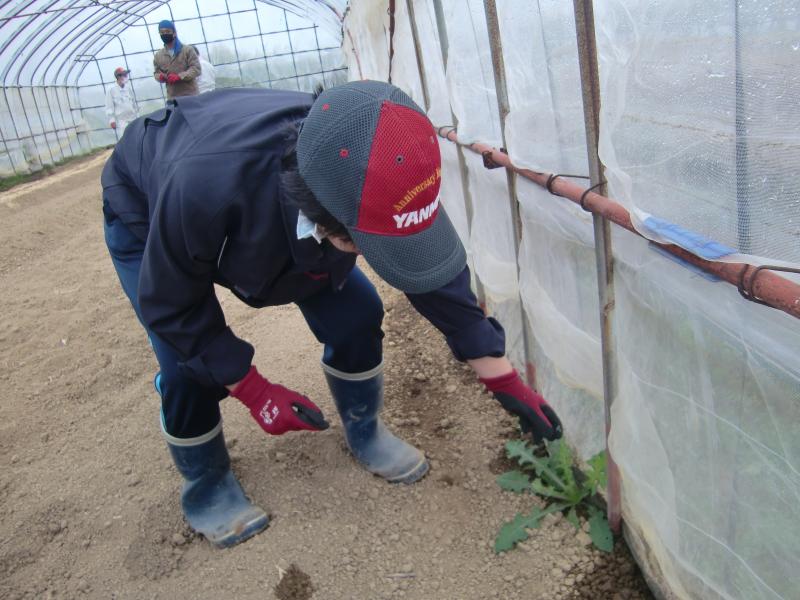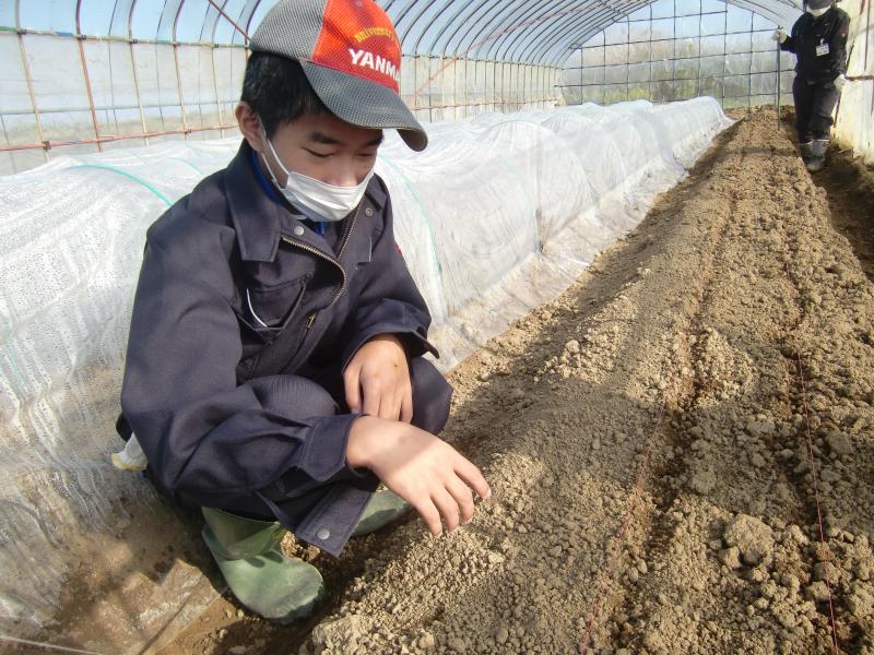 実習で学んだことを活かして、学校の温室でも畝を作り、作物を植える取り組みを始めました。大きく育つのが楽しみです。
