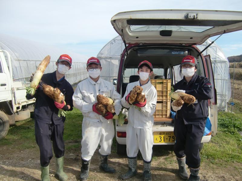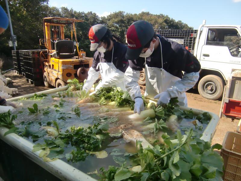2020年11月20日 08時18分10月27日(火)~11月19日(木)のうち8日間、県の農業分野への就労促進モデル事業の一環として、農工班生徒7名が合同会社Red Earth Companyにおいて農業実習を行いました。大根の出荷準備作業では、一面大根畑の大根をひたすら収穫し洗いました。また温室の作業では畝立てから水菜の収穫までの一連の作業を体験しました。種まきした水菜が成長し、収穫することができて農業の楽しさを感じることができました。