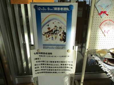 2020年12月4日 17時25分七尾市障害者週間「心のバリアフリー作品展」が下記のとおり開催されており、児童生徒の一部の作品、作業製品を展示しております。会場は自由にご覧いただけます。