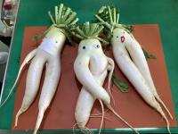 畑のひょうきんトリオ(高等部農工班) 2021年6月24日 08時21分 高等部農工班の畑から、ひょうきんな大根が収穫されました。なぜか売れ残り…ひょうきんトリオに変身しました。葉っぱの髪の毛もユニークで「Shall we dance?(踊りませんか)」と言っているようです。 いいね