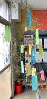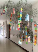2021年7月12日 13時53分7月7日(水)七夕の日。校内の廊下の七夕飾りのいくつかを紹介します。みんなの願い事をまとめた大きい笹飾りから、かわいらしい飾りまで、いろいろです。「修学旅行に行けますように」とか「実習で仕事ができますように」や、「お金持ちになって有名になりたい」「おもちゃが欲しい」などなど、願い事もいろいろです。願い事が叶いますように!