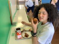 2022年7月4日 08時25分本校では、自然災害などに備えて3食分の非常食を備蓄し、賞味期限が間近になると入れ替えをしています。7月1日の給食では、缶詰に入ったマフィンを提供しました。この缶詰は底にフタがあり自分でも開けることができますが、今回は調理の方があらかじめ開封してくださいました。「非常食、味はどうなの?」と思いながら食べてみると、ほんのり甘くしっとりとして美味しいマフィンでしたね。お皿に乗った缶を持ち上げると、パカッとマフィンが出てきてうれしそうにしている子や、3年間保存できることに驚いている子もおり、災害時の備えについて知る機会になりました。