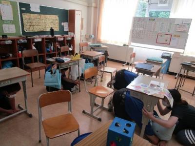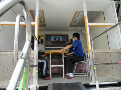 その後の起震車体験では、児童生徒の実態にあわせて、最近頻発する震度3程度から能登半島地震時の震度6強、起震車で体験できる最大震度である震度7まで体験しました。