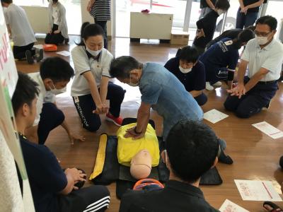 7月31日(月)に日本赤十字社石川県支部から講師の方をお招きして、教職員対象に救急法講習会を行いました。児童生徒の緊急時に備え、傷病者の観察や心肺蘇生法、AEDを用いた除細動について実技を学びました。また、熱中症の対応方法やもしもの時パニックにならないためにあらゆるケースを想定しておくとよいとアドバイスなどもいただきました。