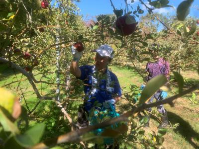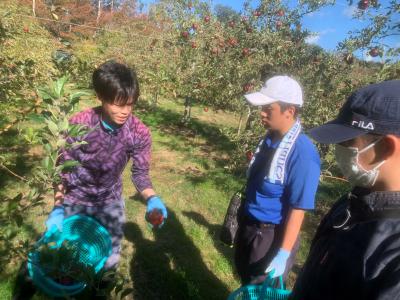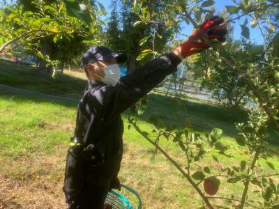 2023年11月14日 07時49分10月31日(火)と11月2日(木)に農業生産法人スギヨファームに農業実習に行きました。実習では、収穫したリンゴを出荷するまでの過程について説明を受けた後、圃場へ移動しリンゴの収穫の仕方について指導者の方が実践してくれました。リンゴに傷がついてしまうと出荷できないため、リンゴを適度な力で持ち、上方に捻るように収穫するとよいと教えてくれました。生徒たちは、リンゴを傷つけないように注意しながら丁寧に作業に取り組んでいました。また、高い位置に熟したリンゴがあった際に「あの高いところにあるリンゴはどのように収穫するんですか。」と生徒から指導者へ質問があり、指導者の方は「脚立を使用して一個一個手で収穫します。」と説明してくださいました。このように生徒たちは、関心をもって作業に取り組む姿がうかがえました。さらに、指導者の方からは、「丁寧に作業に取り組んでおり、大変良い」と評価をいただきました。
