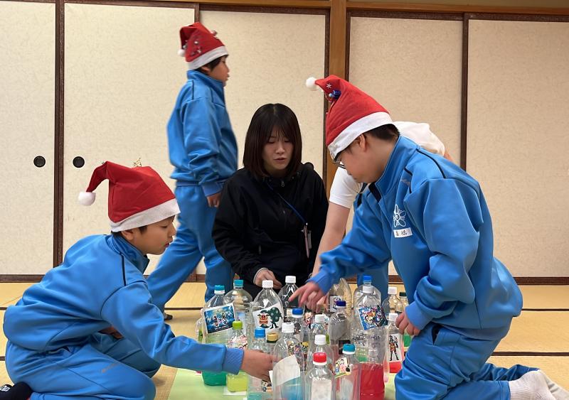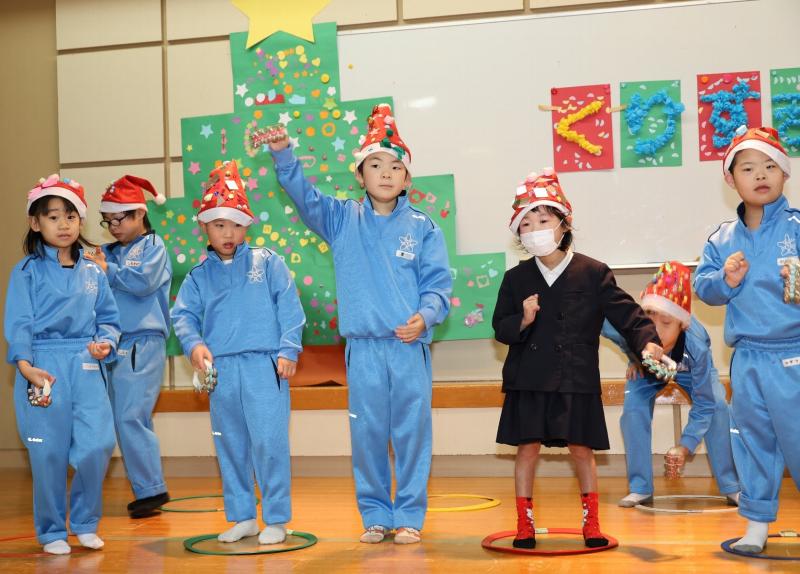 2025年1月6日 13時07分12月20日(金)、小学部のクリスマス会が行われました。子供たちは自分でデコレーションしたサンタの帽子をかぶって参加しました。