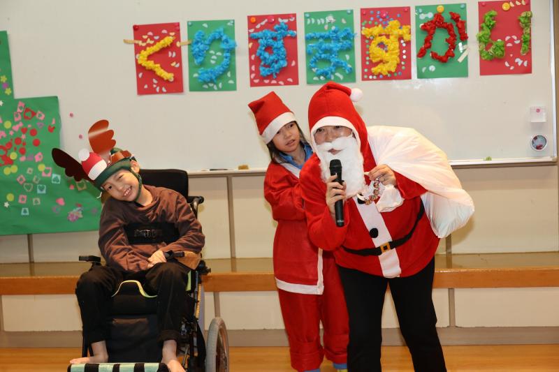 12月20日(金)、小学部のクリスマス会が行われました。子供たちは自分でデコレーションしたサンタの帽子をかぶって参加しました。