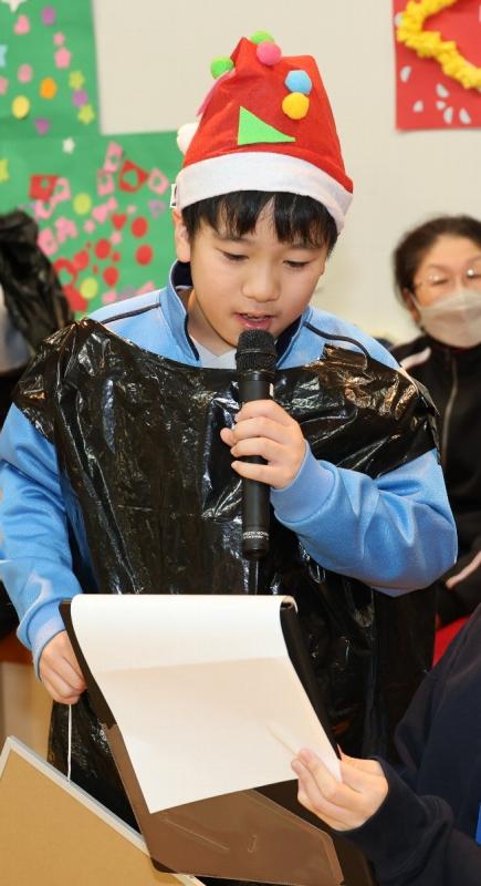 各学年でクリスマス会に向けて準備したゲームや出し物をしたり、クリスマスの歌をみんなで歌ったりして盛り上がりました。おたのしみタイムでは、サンタクロースからプレゼントを受け取り、楽しいひと時を過ごしました。