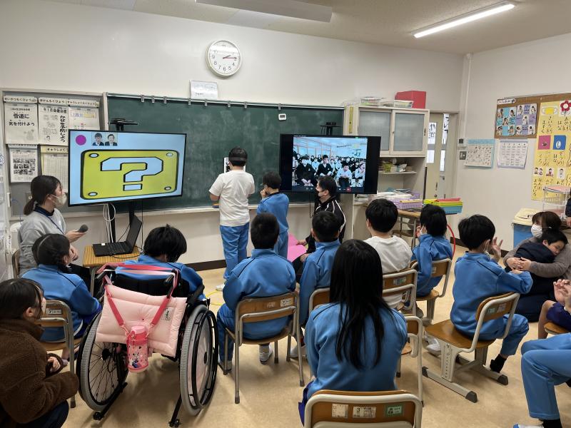 2025年1月17日 17時03分1月15日(水)に朝日小学校との学校間交流を行いました。今年度3回目の交流は、オンラインで行い、ジェスチャーゲームをして楽しみました。