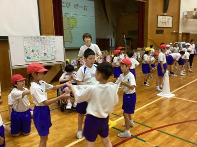 2025年7月1日 08時28分6月26日(木)、本校にて朝日小学校(4年生)との学校間交流を行いました。本番までに、ゲームや自分たちが運動会で頑張ったバルーン活動を一生懸命練習してきました。はじめは会えて嬉しい気持ちと、新しい友達と交流して緊張している様子がありましたが、活動をしていくうちに会話も増え、両校の子どもたちから笑顔が見られました。交流が終わるころにはすっかり仲良くなり、「またきてね~!」と大きく手を振って見送る素敵な姿が見られました。2学期以降の交流も楽しみです。