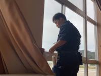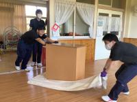 10月16日(木)、30日(木)にあさひこども園へ、10月22日(水)に徳田コミュニティーセンターへ出向き、ワックスがけや窓清掃を行いました。
