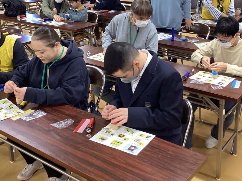 2025年11月13日 08時14分11月8日(土)の親子で体験では、北陸電力株式会社の方にご協力いただき、「空気砲づくり」や「万華鏡LEDライトづくり」を行いました。ダンボールから上手に煙の輪をいくつも出したり、色鮮やかな光を壁や床に映し出して光の具合を確かめたり、科学の不思議に触れることができました。