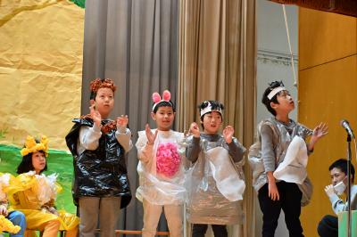 児童生徒による学習発表(ステージ発表・音楽発表)では、子供たちの台詞や音楽に合わせて観客席から手拍子が起こる等温かい雰囲気に会場が包まれました。高等部による模擬店や作業製品販売は、心がこもった接客で大盛況でした。また、作品展示や事業所の販売等もあり大変賑わいました。