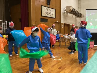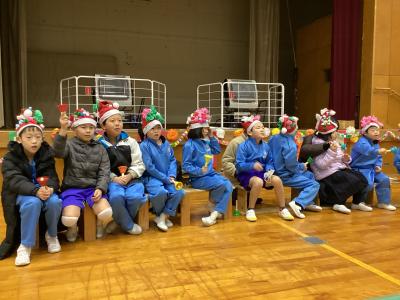 12月18日(木)、小学部のクリスマス会が行われました。自分で飾りつけをしたサンタ帽子をかぶり、学年山ごとの出し物の発表をしたり、ゲームやダンスをしたりして楽しみました。サンタクロースからプレゼントをもらって、みんな嬉しそうでした。