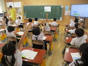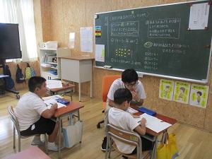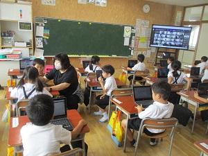 1限目の始業式は、暑さに慣れていない子供たちのことを考えて、体育館に集まらずオンラインで実施しました。校長先生から、2学期のスローガン「向上・レベルアップ」をめざすために、「自分で考えて、工夫して、チャレンジすることが、楽しくぐんぐんレベルアップする近道ですよ」というお話がありました。