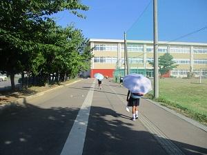 今日は、朝からとても良いお天気です。七塚っ子は、日傘をさして登校する子もいます。暑さをどうコントロールしたらいいか、ちゃんと考えているのですね。