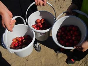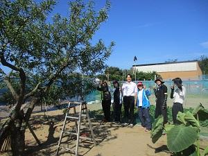 学校の木津桃が実り、収穫したという記事を以前載せましたが、七塚小学校の地域応援団である西谷さんの畑でもたくさんの木津桃が実っています。本来なら子供たちと一緒に取らせていただいているのですが、この暑さの中、何かあってはということで、今年は職員数名が収穫に行ってきました。たわわに実った木津桃、とても甘くていい匂いがしました。たくさん取れた木津桃は、2学期にジャムにする予定です。どんな味がするのか、今からとても楽しみです