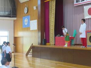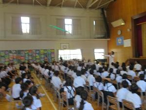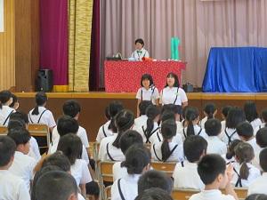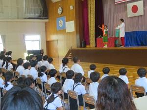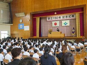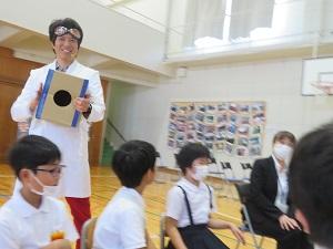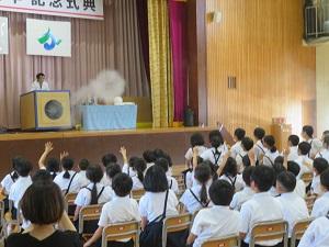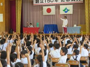 2023年7月5日 15時04分150周年記念式典の第2部は、サイエンスショーです。テレビでおなじみ、米村でんじろうさんのお弟子さんにあたる海老谷浩さん、通称「エビちゃん先生」をお迎えして、音、ブーメラン、空気砲、空気の重さという4つの題材を楽しくわかりやすく紹介・実験してくださいました。子供たちは、みんな大興奮し、本当に楽しいひとときを過ごしました。あっという間の1時間でしたが、子供たちにとってはきっと忘れられない楽しい思い出になったと思います。1年生から6年生までの皆さんは、この150周年記念式典に向けて、いろいろなことに頑張ってきました。そのご褒美ともいえる、本当に夢のようなひとときでした。本当にありがとうございました。