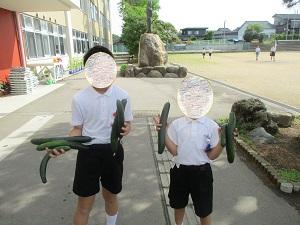 また学校の畑「七キラ農園」では、2年生が育てた夏野菜が収穫を迎えています。そして、今日もたくさんの児童がプールでの学習を楽しんでいます。七塚っ子は、暑さに負けず元気に夏を楽しんでいます。