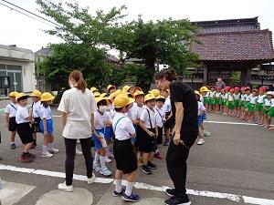 1年生は生活科の学習で校区めぐりをしています。今日は木津コースをめぐり、木津幼稚園へ立ち寄りました。懐かしい園舎や先生方と交流でき、子供たちも大満足でした。先生方にも成長した姿を見てもらえましたね。1年生になって3カ月、どんどんできることが増えて楽しみな1年生です。
