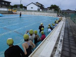 6限目には、6年生が今年のプールでの学習のスタートを切り、体育の授業を実施しました。模範泳のあと、みんなで水慣れの「洗濯機」「波」をして、自由泳をしました。