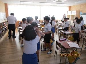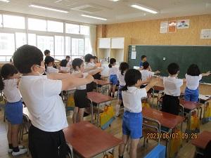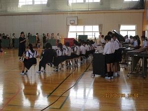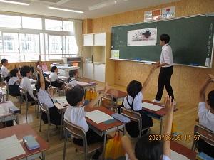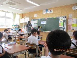 2023年6月9日 16時02分朝方の雨はすっかり止んで、午後からは爽やかな好天となりました。今日の5限目は授業参観、その後5年生が音楽会・150周年記念式典で披露する曲の校内発表会、さらに引き渡し訓練がありました。