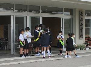 今日も七塚小学校から見る海は、とてもきれいです。こんな素敵な環境で毎日学ぶことができる子供たちは、本当に幸せだなぁとつくづく感じます。そして今日も七塚っ子は、とても元気です。登校時には玄関で、企画委員会の児童があいさつ運動をし、お昼の放送や廊下の掲示でで「あいさつ賢者」を紹介しています。
