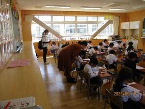 かほく市は、幼小連携の推進に力を入れており「架け橋期」である1年生と年長期の相互参観を実施しています。その一環として5/10にははまなす子ども園、5/11には木津幼稚園の先生方が、1年生の授業を観に来てくださいました。後日、小学校1年の担任も参観に伺う予定です。後日、相互参観を振り返っての意見交換も予定しています。幼・小の相互理解を深め、それぞれの教育活動がさらに充実したものになることを願っています。