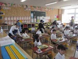 5年生は、6年生の宿泊体験活動延期によるお弁当デーが続くため、代わりに1年生の給食のお手伝いに行ってくれました。さすが、高学年ですね。本当にありがとうございます。