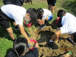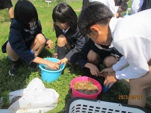 また先日実施した田植えに関連して、学校でもバケツ稲を栽培することにしました。1つのバケツに3か所苗を植えて、これから学校でも育てながら、水田との違いなどを比べていきます。この七塚校区は田んぼがありません。でも、バケツ稲を植えることで、少しでも米作りの大変さを実感できるといいですね。経験することでさらにたくさんの課題も生まれてくるでしょう。どこまで育つか、楽しみですね。