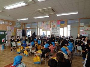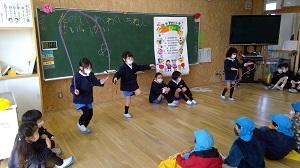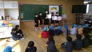 来年七塚小学校に入学する年長さんを招待し,1年生が勉強紹介や学校案内をしました。この日のために一生懸命練習してきた1年生は緊張した様子でしたが,これまでの練習の成果を発揮し生き生きと年長さんと接していました。